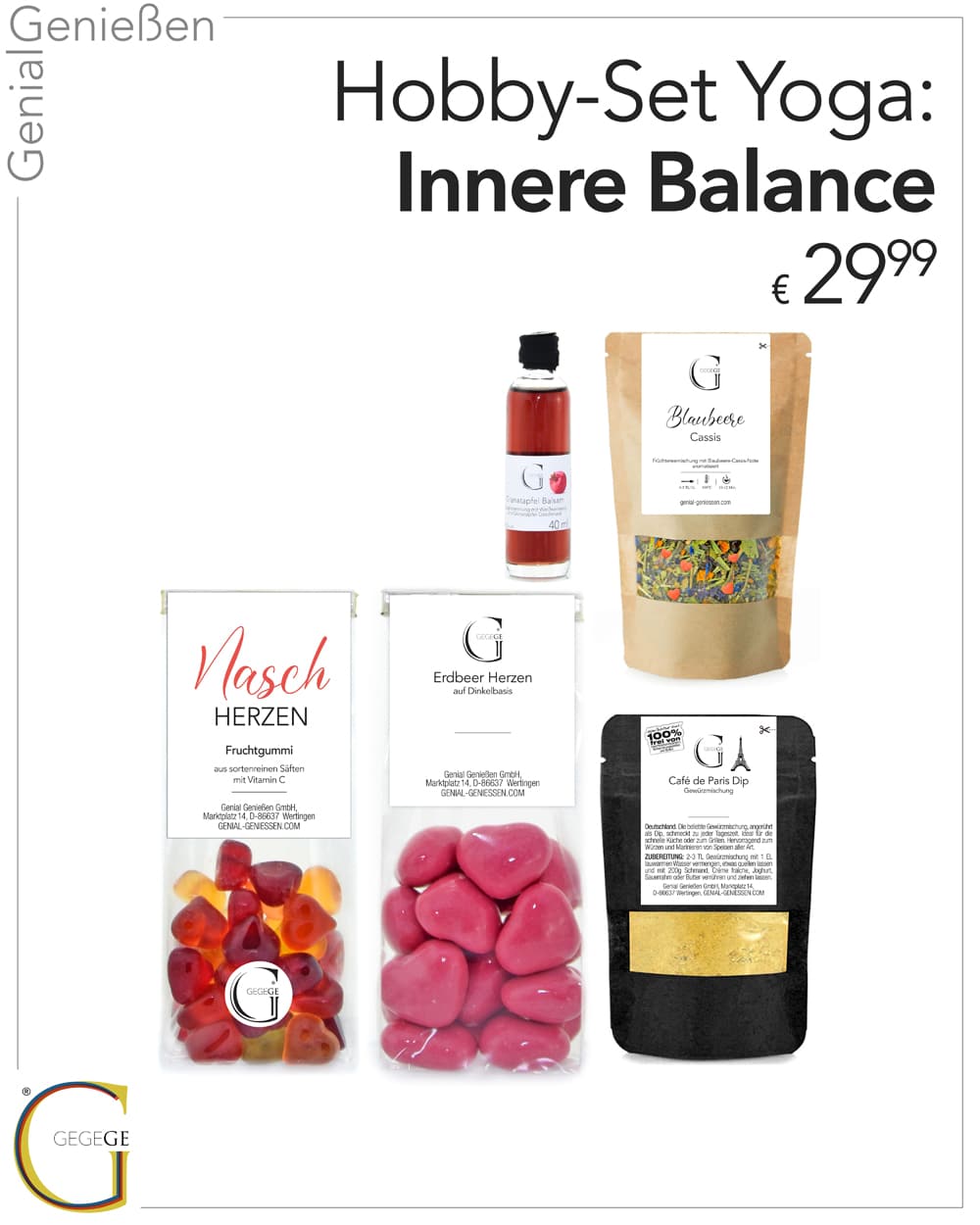 Ganz gleich, ob es sich um einen speziellen Anlass handelt oder einfach nur, um jemandem eine Freude zu machen oder Danke zu sagen – das „Innere Balance – Yoga“ Hobby-Set ist eine originelle Geschenkidee für alle Yoga-Liebhaber. Schenke deinen Liebsten eine Auszeit vom Alltag und fördere die innere Balance mit dieser köstlichen Kombination.