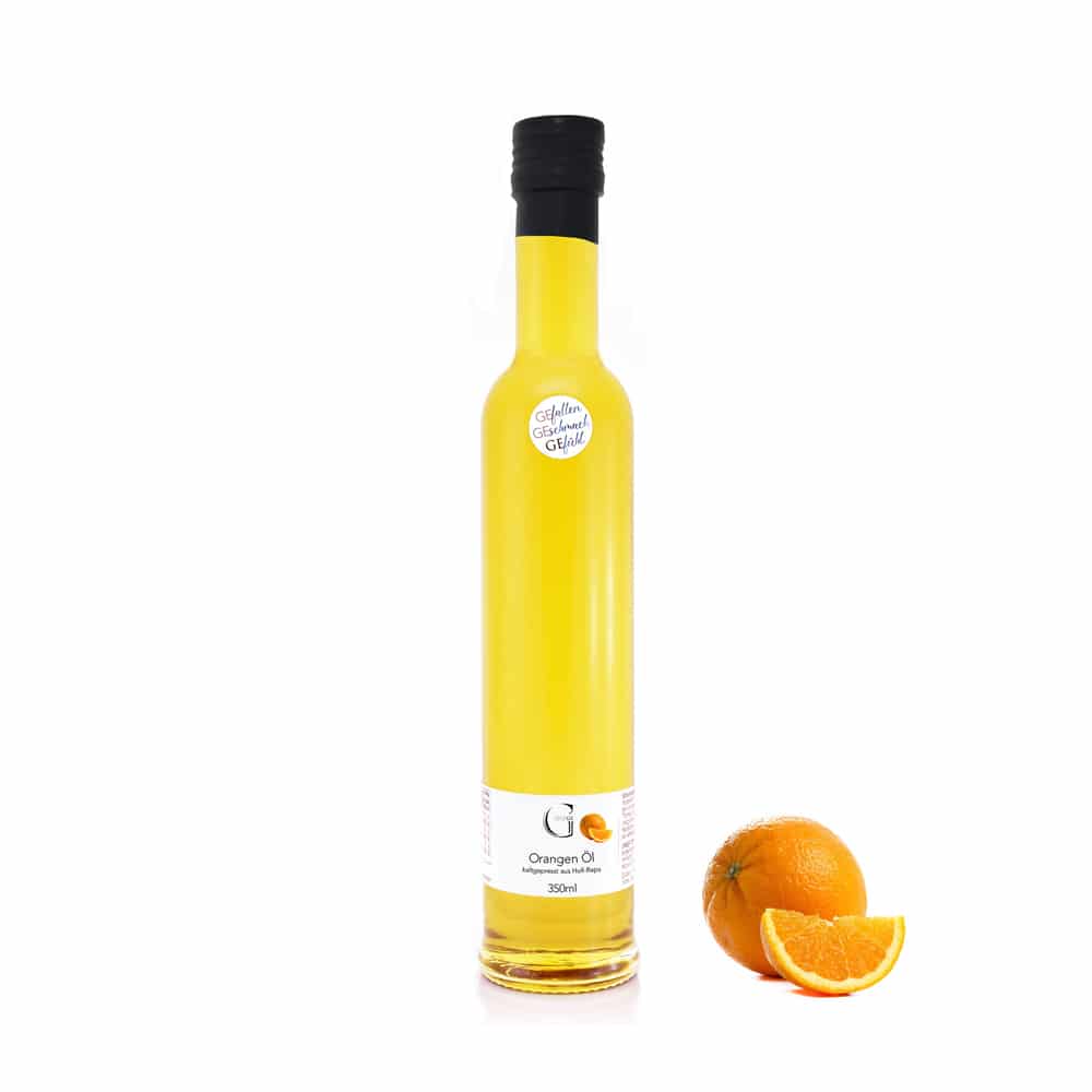 Rapsöl - schonend kalt gepresst, Orangenöl.