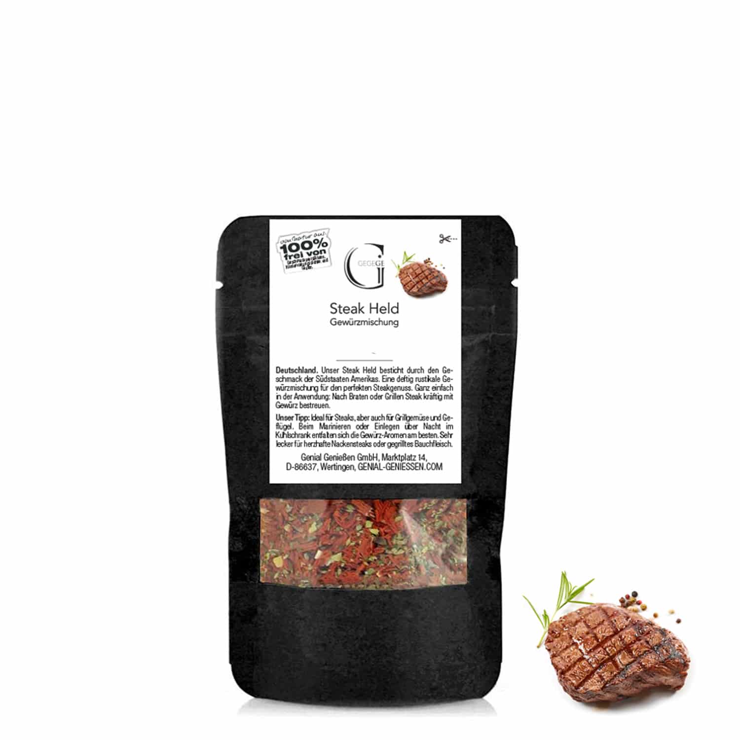 Anwendungstipps - Lieferung in 1-3 Werktagen (B2C)Herkunft: Deutschland.Unser Steak Held besticht durch den Geschmack der Südstaaten Amerikas. Eine deftig rustikale Gewürzmischung für den perfekten Steakgenuss.