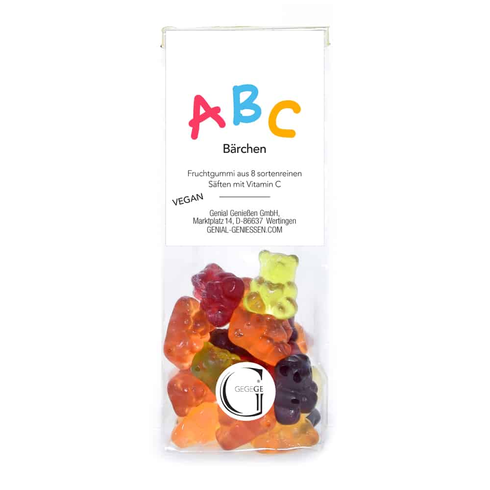 Verkehrsbezeichnung: Kleine Pektin-Bären: Fruchtgummi mit 8 sortenreinen Säften und Vitamin C.