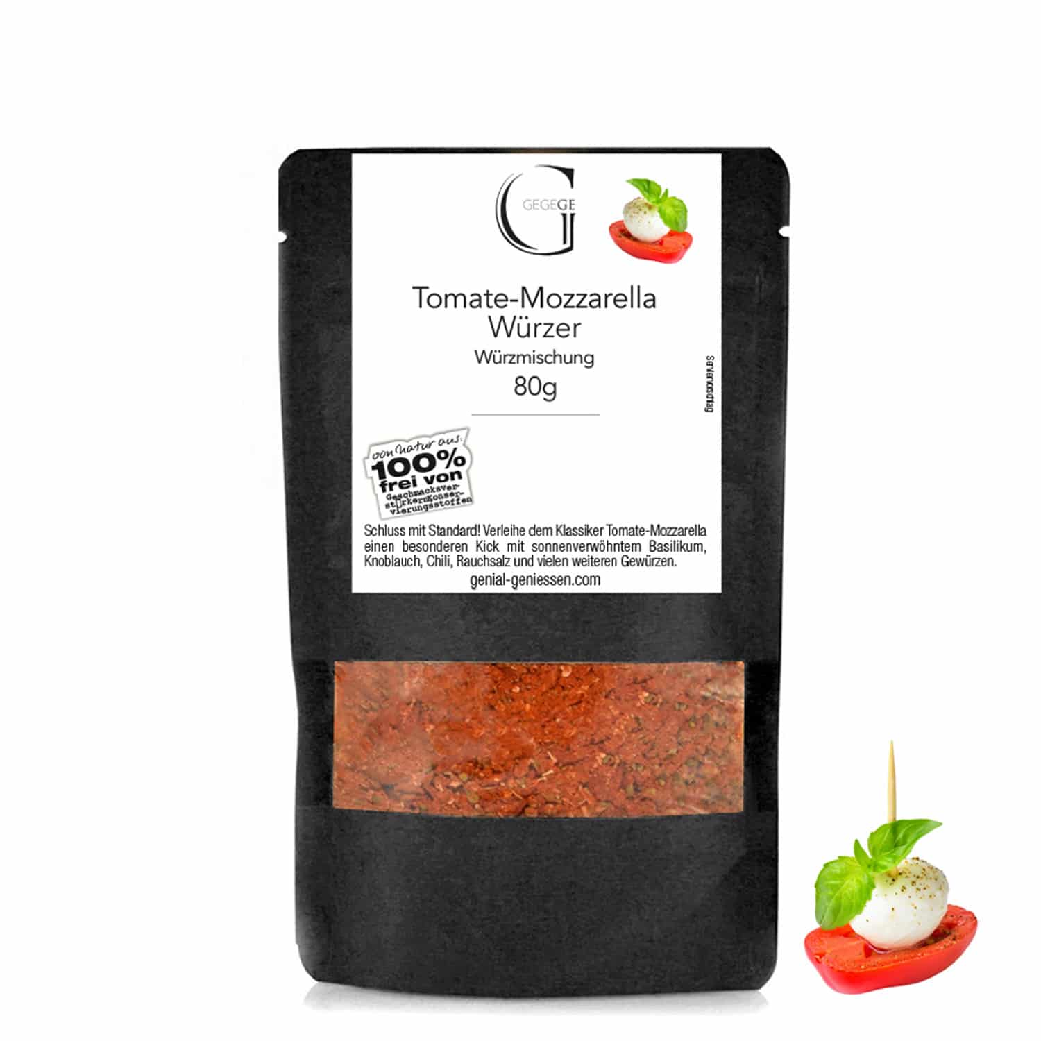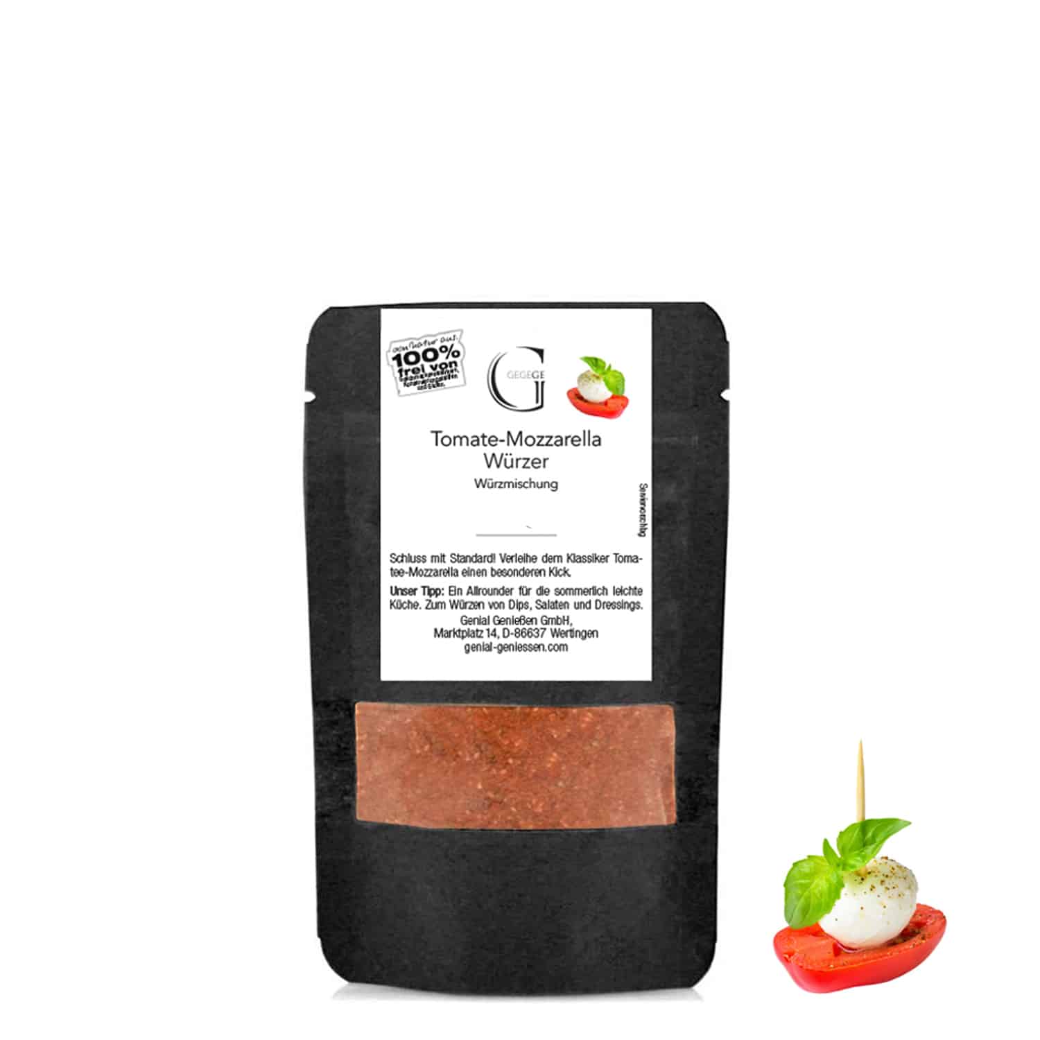 Anwendungstipps - Lieferung in 1-3 Werktagen (B2C)Herkunft: Deutschland.Schluss mit Standard: Tomate-Mozzarella! Wenn du einmal etwas Besonderes und Anderes als Standard servieren möchtest, solltest du unseren Tomaten-Mozzarella Würzer einsetzen. Neben sonnenverwöhntem Basilikum haben wir den Würzer mit Knoblauch, Chili, Petersilie und vielen weitere Komponenten aufgepeppt. So bringst du einen neuen Geschmack an den italienischen Klassiker.