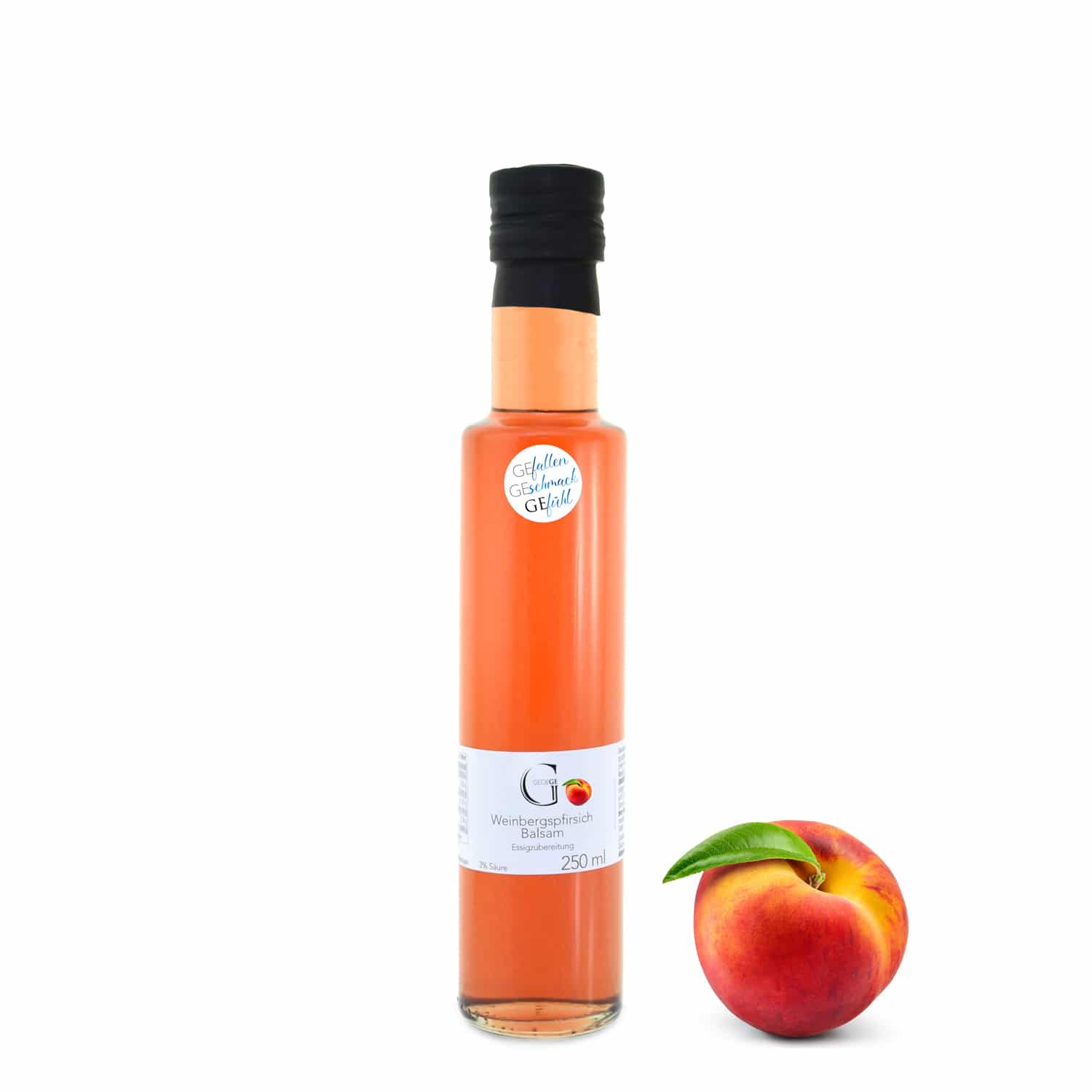 Anwendungstipps - Lieferung in 1-3 Werktagen (B2C)Herkunft: Rheinhessen.In dieser Essigspezialität steckt der volle Geschmack des roten Weinbergpfirsichs. Sein tiefrotes Fruchtfleisch schmeckt leicht süß und intensiv fruchtig.