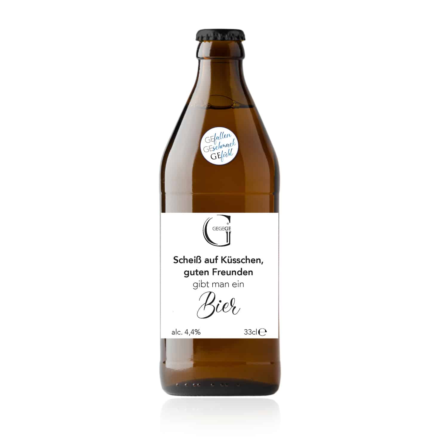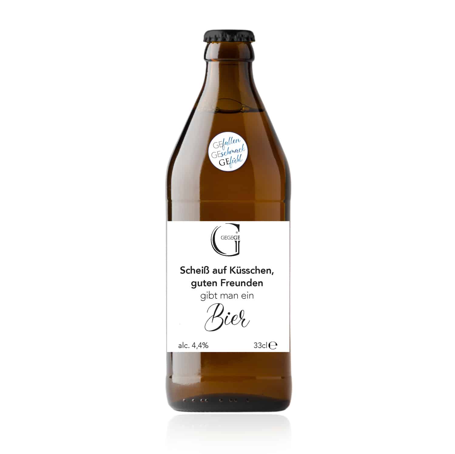 Motto-Bier „Scheiß auf Küsschen, guten Freunden gibt man ein Bier“ 0,33 L