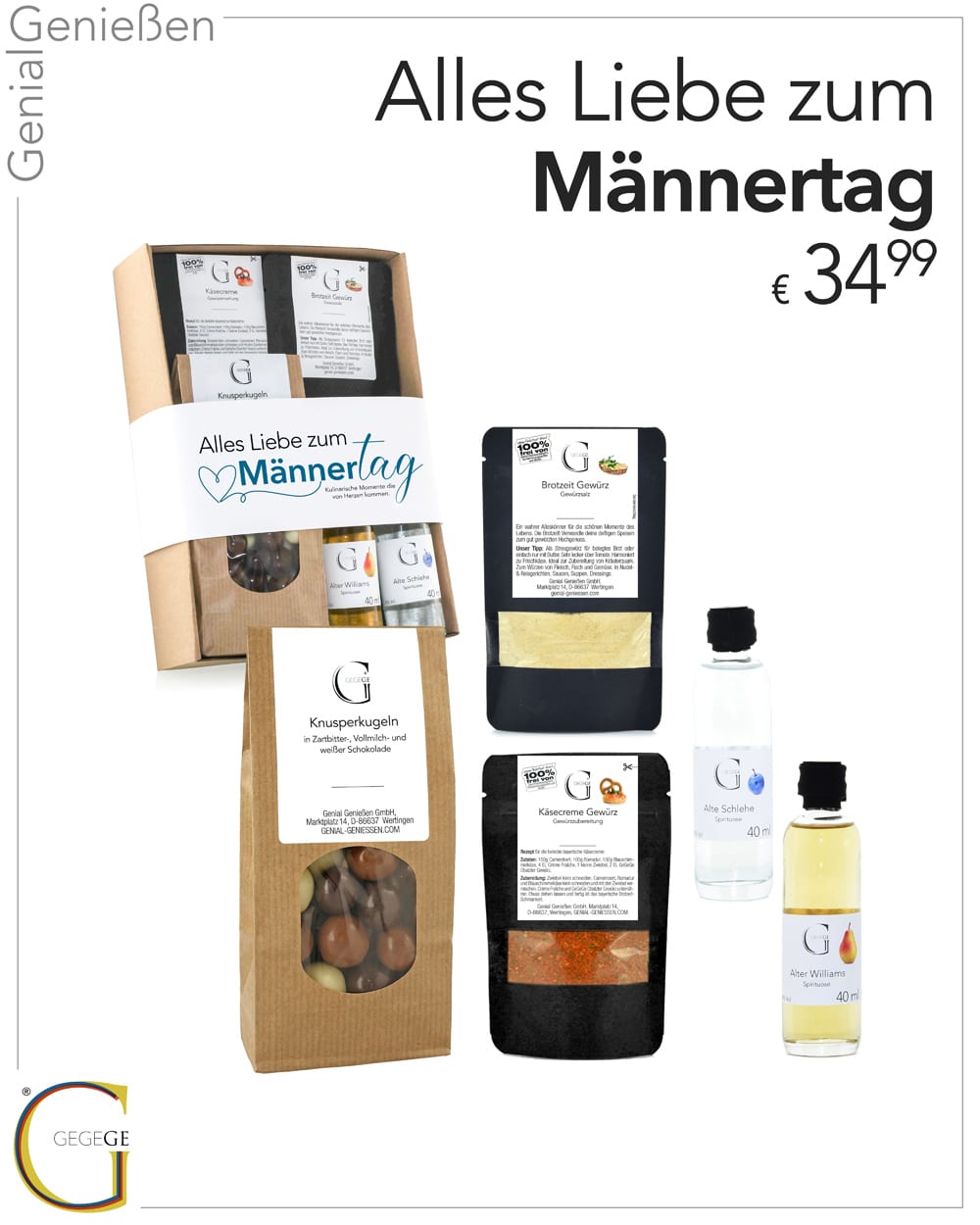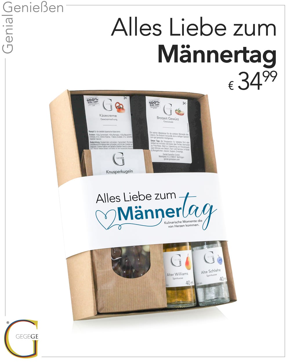 Überrasche deinen Papa mit einem dieser Geschenksets: „Alles Liebe zum Vatertag“ oder „Alles Liebe zum Männertag“ – eine kleine kulinarische Aufmerksamkeit mit Spezialitäten für Feinschmecker-Väter, denn für Papa ist nur das Beste gut genug.