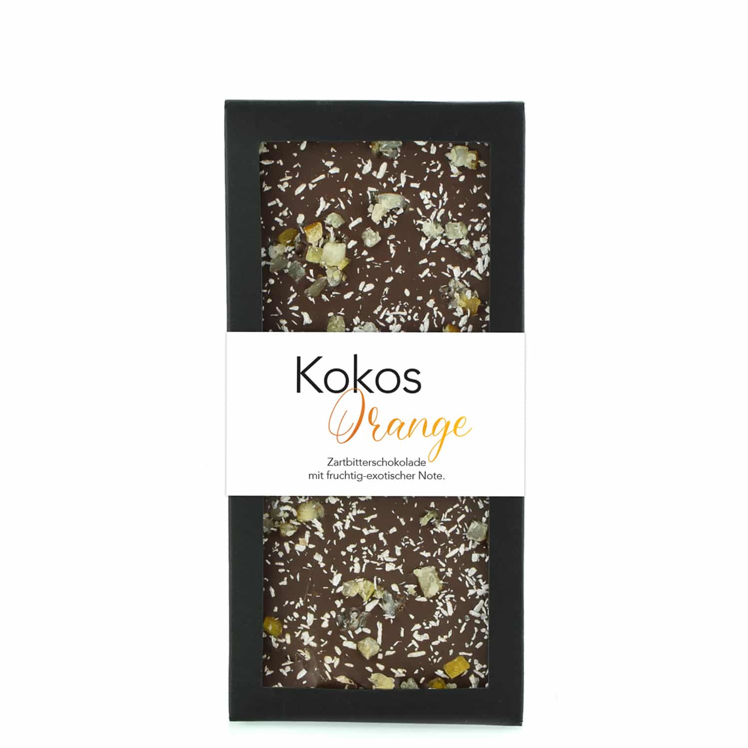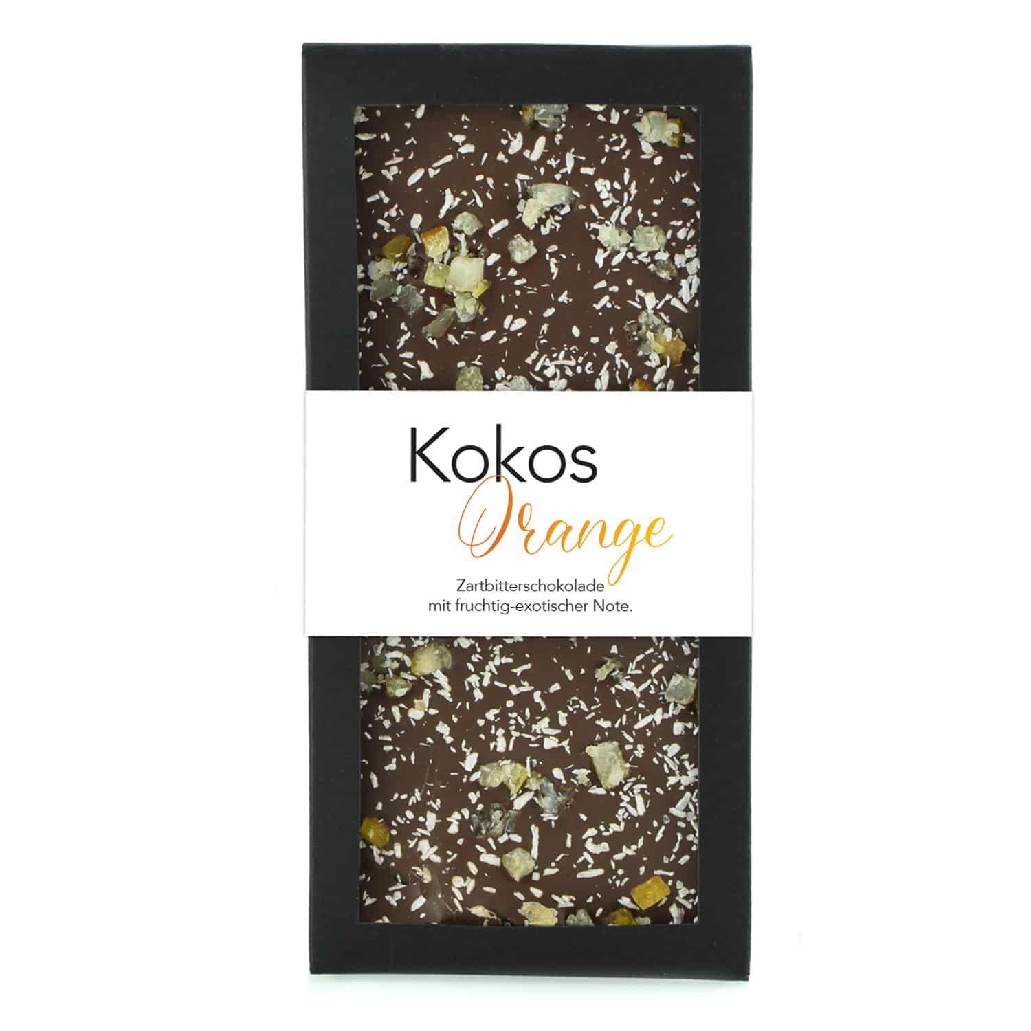 Verkehrsbezeichnung: Schokoladentafel Zartbitter – Kokos - Orangeat „Handgefertigt“