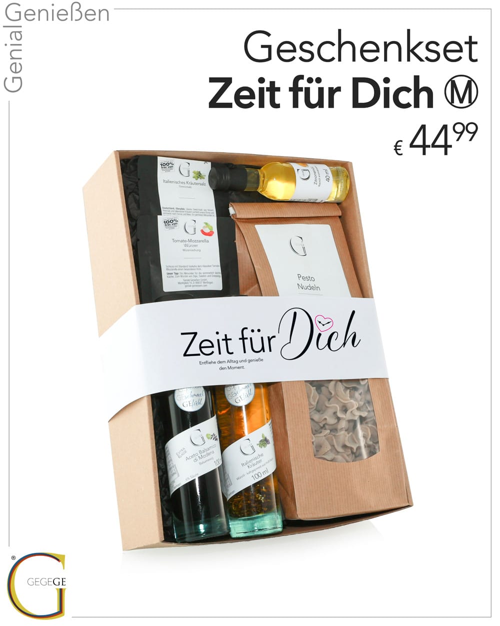 Schenke deinem Lieblingsmensch einmal „Zeit für Dich“ – ein perfektes kleines Geschenk für Mama, die beste Freundin oder Oma. Unser Tipp: Bereite ein kleines Essen vor, verfeinere es mit diesen besonderen Köstlichkeiten und lade deine Liebsten auf etwas Zeit zum gemeinsamen Genießen ein! Andere Möglichkeit: setz dich hin – und genieße selbst ;-).